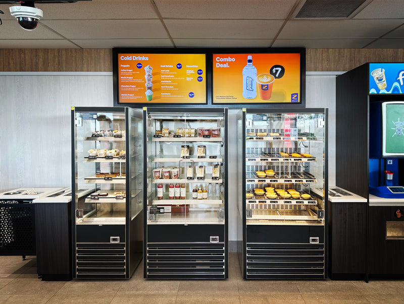 The grab 'n' go offering at Z Energy is working perfectly with the installation of heated and refrigerated COUNTER-TOP STG and MULTIDECK DTG cabinets at these busy petrol stations around New Zealand.